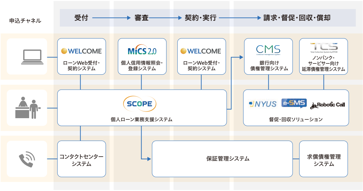 金融機関、保証会社からリース、クレジット、サービサーまで、幅広い業態に対応。
