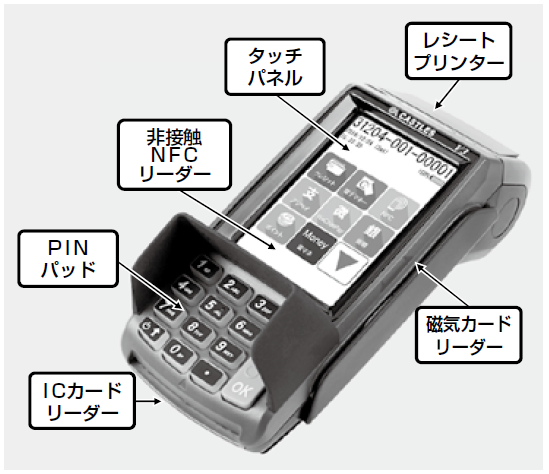 決済端末には、ICカードリーダーやバーコード・QRコードリーダー、磁気カードリーダー、非接触NFCリーダー、PINパッド、レシートプリンターを搭載。クレジットカードから電子マネー、銀聯カードまで、国内外の決済手段を網羅する。タッチパネルを採用しており、操作も簡単だ。価格は1台あたり6万円。