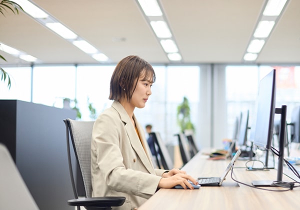 会社の始業時間にあわせて出社。メールはタイトルを見て、お客様からのメールを優先的に確認するようにしています。その後、グループ内での朝会で情報共有をします。